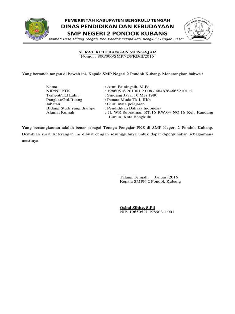 Surat ini menerangkan bahwa nama yang tersebut di dalamnya adalah siswa aktif di sekolah tersebut. Bapak/ibu kepala sma, smk, dan slb di kabupaten nganjuk. Demikian surat pernyataan ini saya perbuat dengan sebenarnya dan untuk bisa dipergunakan sebagaimana mestinya. Digunakan sebagai bukti bahwa seorang guru atau kepala sekolah aktif melaksanakan tugas mengajar di sebuah instansi sekolah atau. Sebelum menampilkan contoh sk pembagian tugas guru sk kbm ada beberapa hal yang perlu saya sampaikan. We have 2 images about surat pernyataan kepala sekolah guru mengajar di sekolah induk including images, pictures, photos, wallpapers, and more. Bahwa beban kerja guru yang mendapat tugas tambahan sebagai wakil kepala sekolah telah diatur dalam pasal 54 ayat (2), sebagai kepala perpustakaan telah diatur dalam pasal 54 ayat (4), dan sebagai kepala laboratorium telah diatur dalam pasal 54 ayat (5) peraturan pemerintah nomor 74 tahun 2008 tentang guru, yaitu paling sedikit harus memenuhi. Kumpulan contoh surat keterangan mengajar di sekolah non induk yang baik dan benar 2019. Contoh surat keputusan pembagian tugas mengajar ini merupakan keputusan kepala sekolah yang berisi tentang pernyataan penugasan kepada setiap guru untuk melaksanakan tugasnya sebagai pengajar sesuai ketentuan dan peraturan yang berlaku. Kepala sekolah sd negeri 4 siliragung. Contoh surat keterangan gaji honorer have an image associated with the other contoh surat keterangan gaji honorer it also will include a picture of a sort that could be observed in the gallery of contoh surat keterangan gaji honorer. Guna meme nuhi kekurangan jam wajib mengajar 24 jam per. Surat contoh perjanjian menyewa rumah;